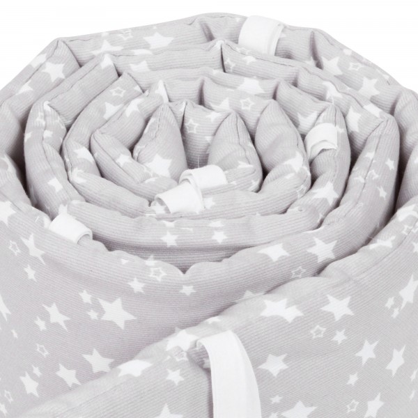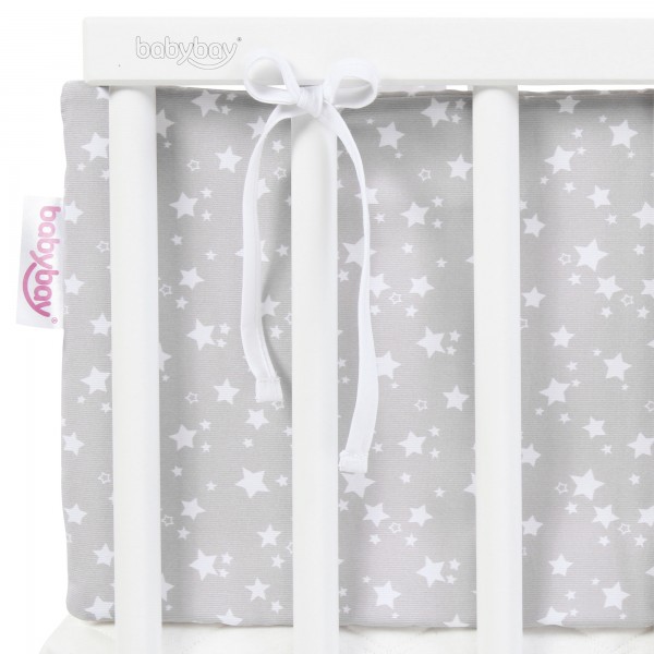 Babybay Protetor de Grades Piqué para Maxi, Boxspring, Comfort e Comfort Plus - cinza c/ estrelas brancas