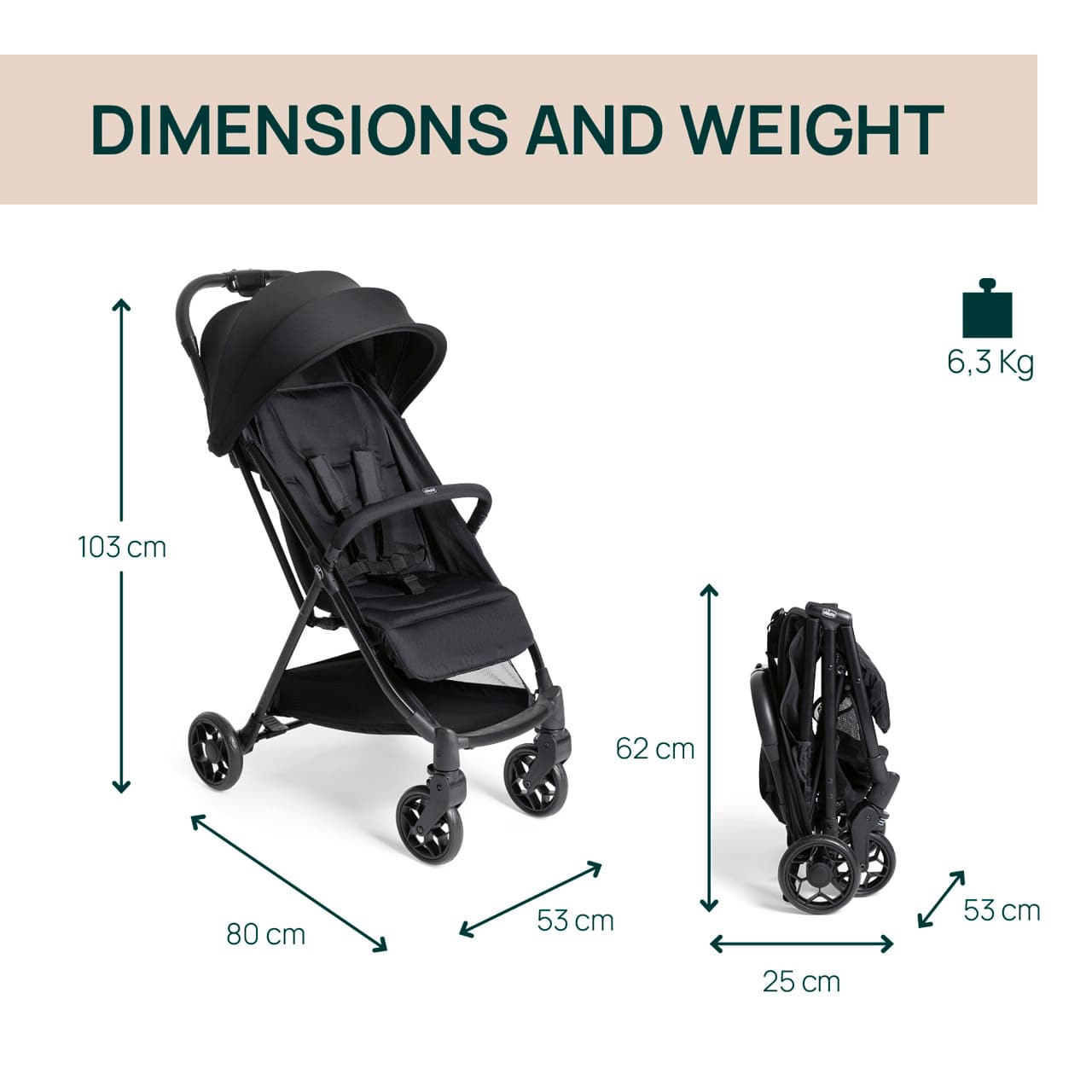 - Capota oferece proteção UV50+ contra o sol e o vento.