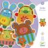 4 simpáticos personagens em madeira para amarrar. Basta seguir os buracos ao redor dos personagens e amarrar os botões.