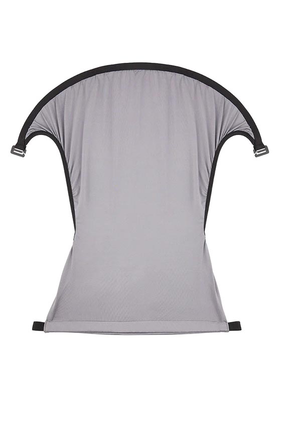 - O tecido é feito de material com proteção solar UPF 50 respirável que filtra a radiação e a luz.