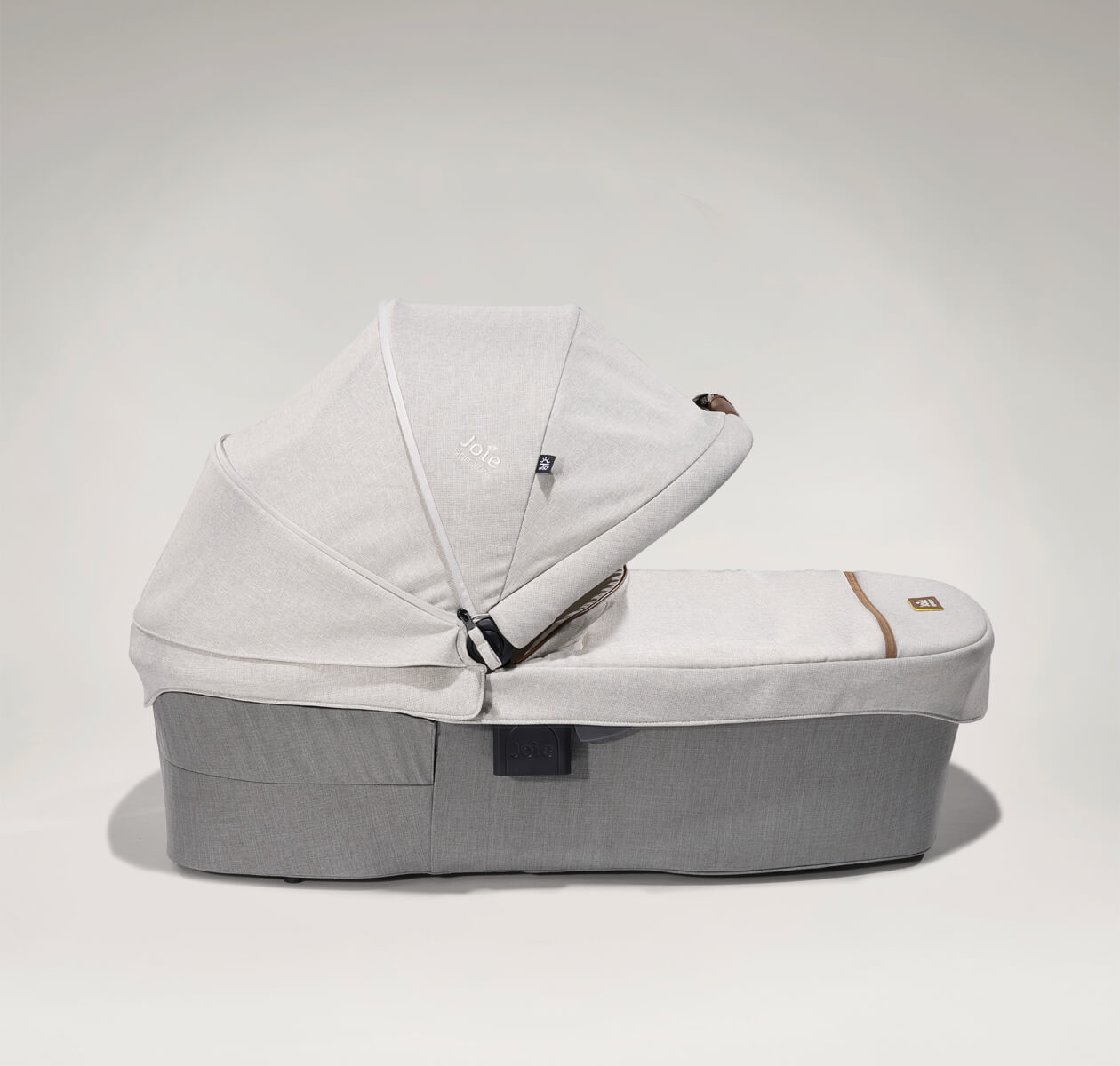 A alcofa Ramble XL Signature da Joie mantém os bebés na melhor posição para a respiração e desenvolvimento que combina com a maioria dos carrinhos Joie.