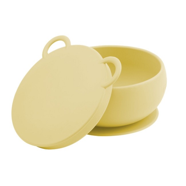 Esta prática taça em silicone tem uma tampa para armazenar as comidas dos mais pequenos.