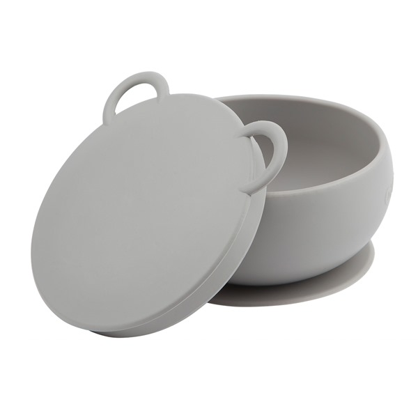 Esta prática taça em silicone tem uma tampa para armazenar as comidas dos mais pequenos.