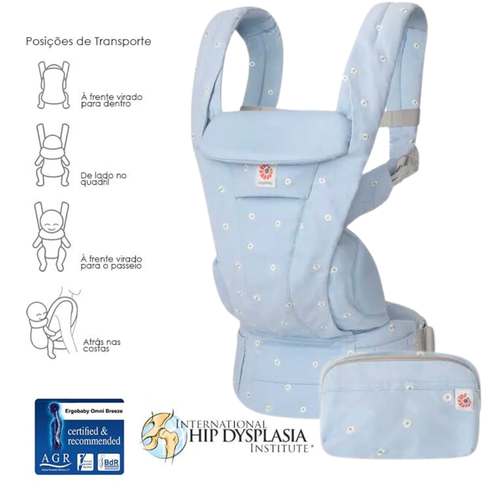 A mochila porta-bebé Omni Deluxe oferece quatro posições para transportar o bebé: