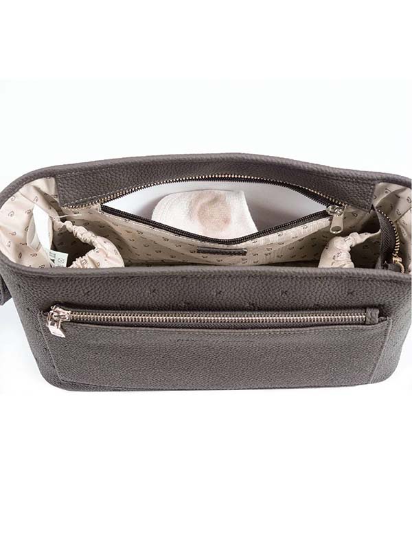 Possui bolsos organizadores internos e externos para um sistema de armazenamento ideal.