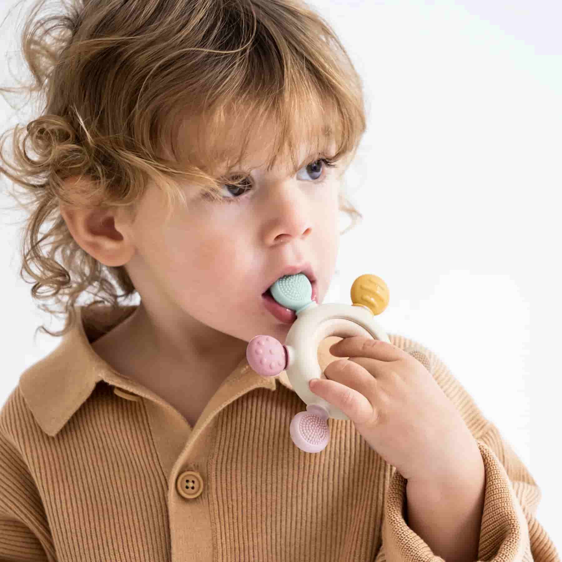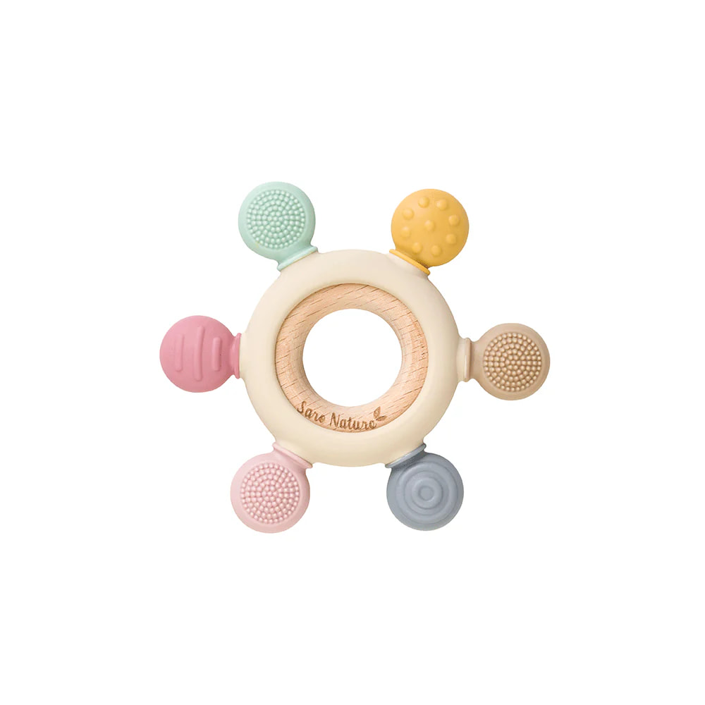 Feito de madeira de faia e silicone orgânico, é tão macio e confortável que o seu bebé não vai querer parar de mordê-lo. As diferentes texturas estimularão os sentidos do seu bebé.