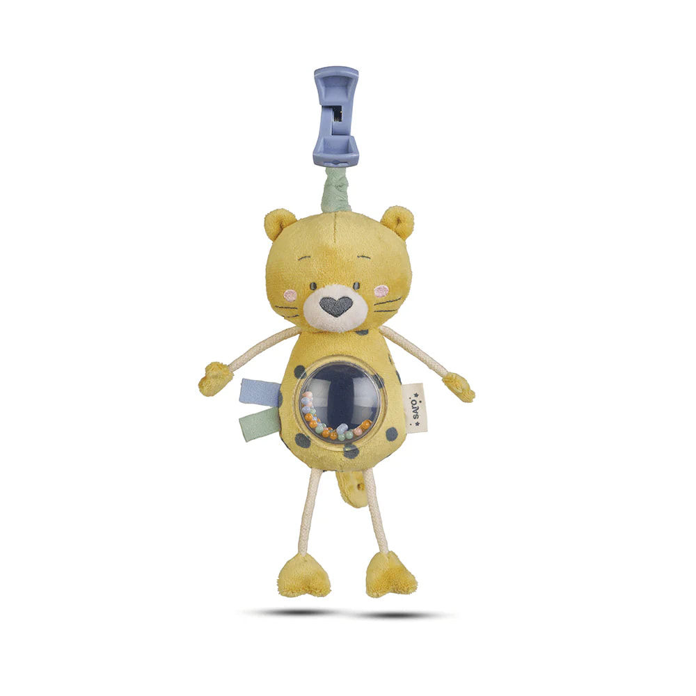 Os passeios serão mais divertidos graças a esta roca. Puxe as perninhas da cheetah para vê-la pular, retornando à sua posição ao ritmo de um sino. Promove a coordenação motora e estimula a curiosidade das crianças.