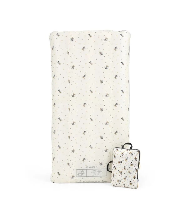 Um colchão insuflável, um acessório perfeito para levar em viagem para crianças a partir dos 3 anos. É leve e compacto, e dispõe de laterais elevadas e um núcleo respirável para um sono mais seguro. Ao ser fechado na bolsa incluída, fica com o tamanho ideal para ser levado na mala de viagem JetKids da Stokke.