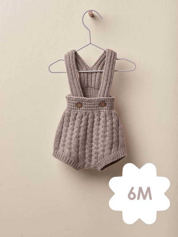Fofo com alças tricotado numa mistura leve de lã merino, viscose, poliamida e caxemira suave, ideal para bebés meninos e meninas, até aos 12 meses. O fofo com alças aperta na frente com botões de côco. Produzido em Wholegarment, uma peça completa sem costuras, para maior conforto do seu bebé.
