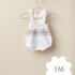 Fofo de alças tricotado em malha fina de algodão orgânico, suave e respirável, ideal para bebés recém nascidos, meninos e meninas, até aos 12 meses. Aperta na frente nas alças com botões madre pérola. Produzido em Wholegarment, uma peça completa sem costuras, para maior conforto do seu bebé.