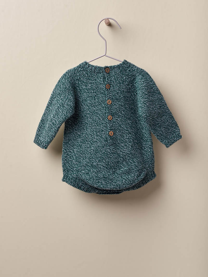 Fofo tricotado em malha suave de lã merino com caxemira, ideal para bebés meninos e meninas, até aos 12 meses. O fofo bordado com um floco de neve na frente, aperta nas costas e entre as pernas com botões de côco. Produzido em Wholegarment, uma peça completa sem costuras, para maior conforto do seu bebé.