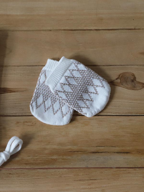 Luvas tricotadas em malha fina de algodão orgânico, suave e respirável, ideais para bebés recém nascidos, meninos e meninas, até aos 3 meses. Produzido em Wholegarment, uma peça completa sem costuras, para maior conforto do seu bebé.