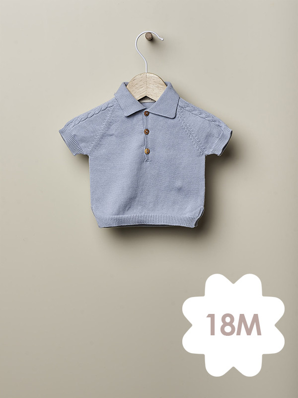 Polo tricotado em malha fina de algodão orgânico, oferece suavidade e respirabilidade, sendo ideal para bebés até aos 18 meses.