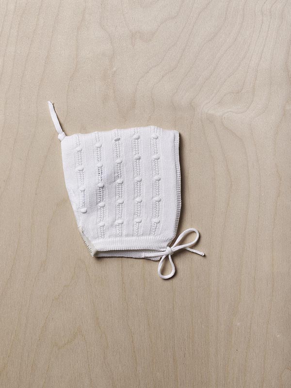 Touca tricotada em malha fina de algodão orgânico, oferecendo uma textura suave e respirável, é perfeito para bebés recém-nascidos, até aos 3 meses. A touca é ajustável com fitas sob o queixo do bebé, garantindo um ajuste seguro e confortável. Produzido utilizando a tecnologia Wholegarment, esta peça é feita de forma completa e sem costuras visíveis, proporcionando o máximo conforto para o seu bebé.
